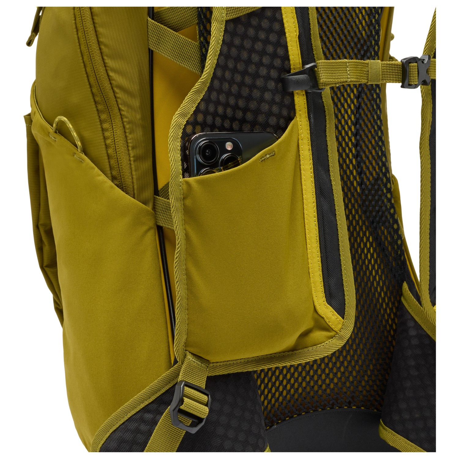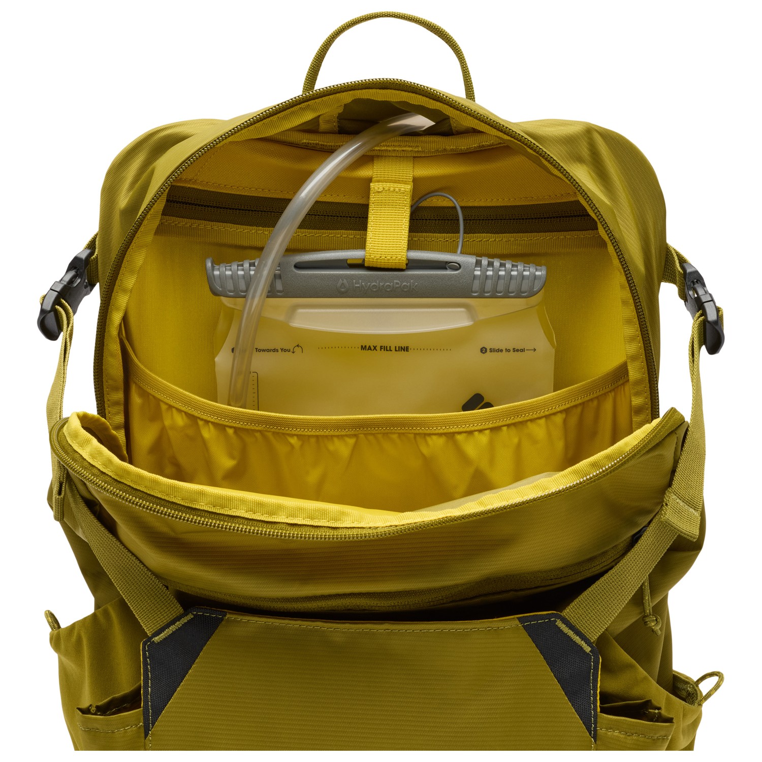 - 2 flaskeholdere, forrum, lynlås-frontlomme, nøgleclip, lomme på skulderrem