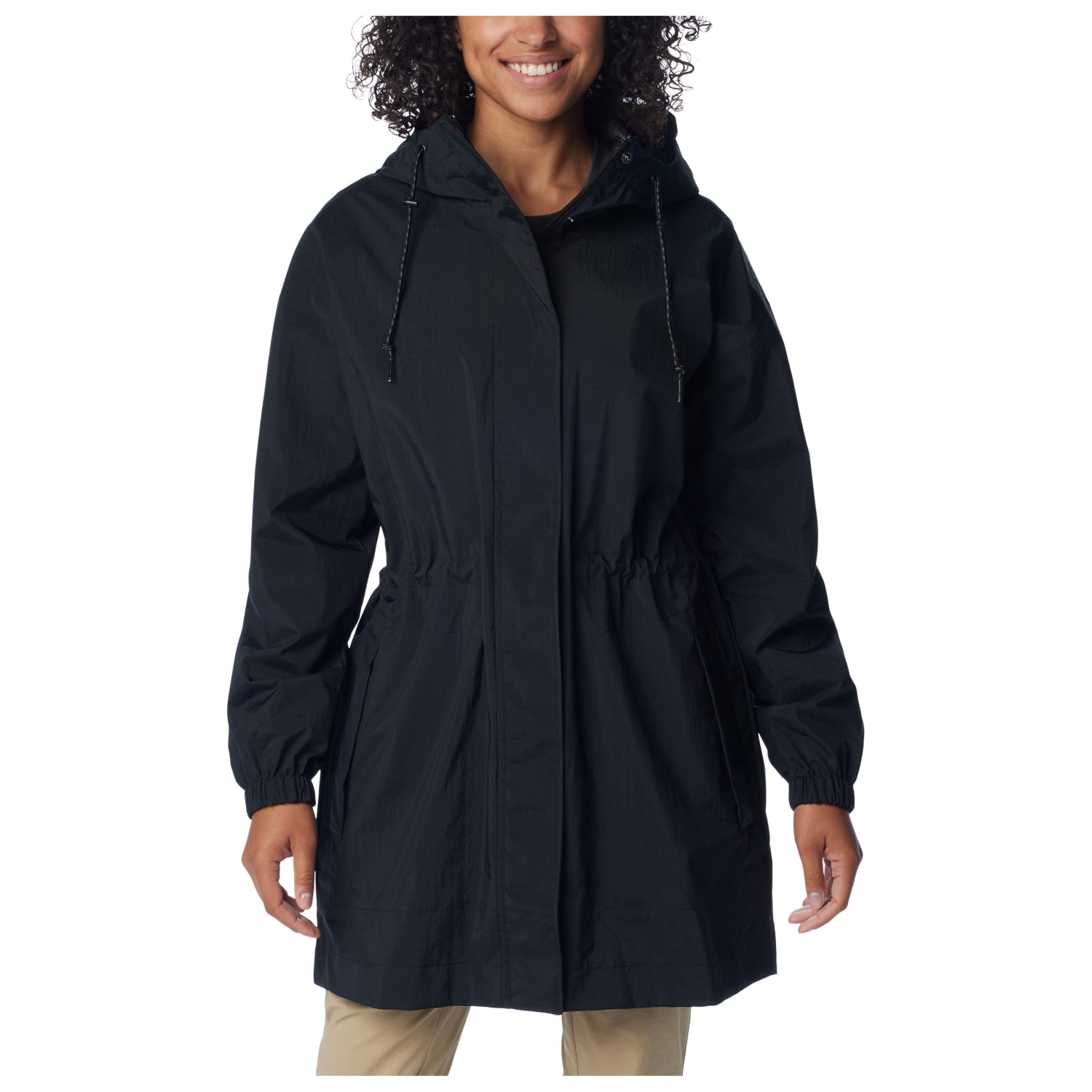 - elastiske ærmeribkanter, Snoretræk i taljen, forlænget ryg