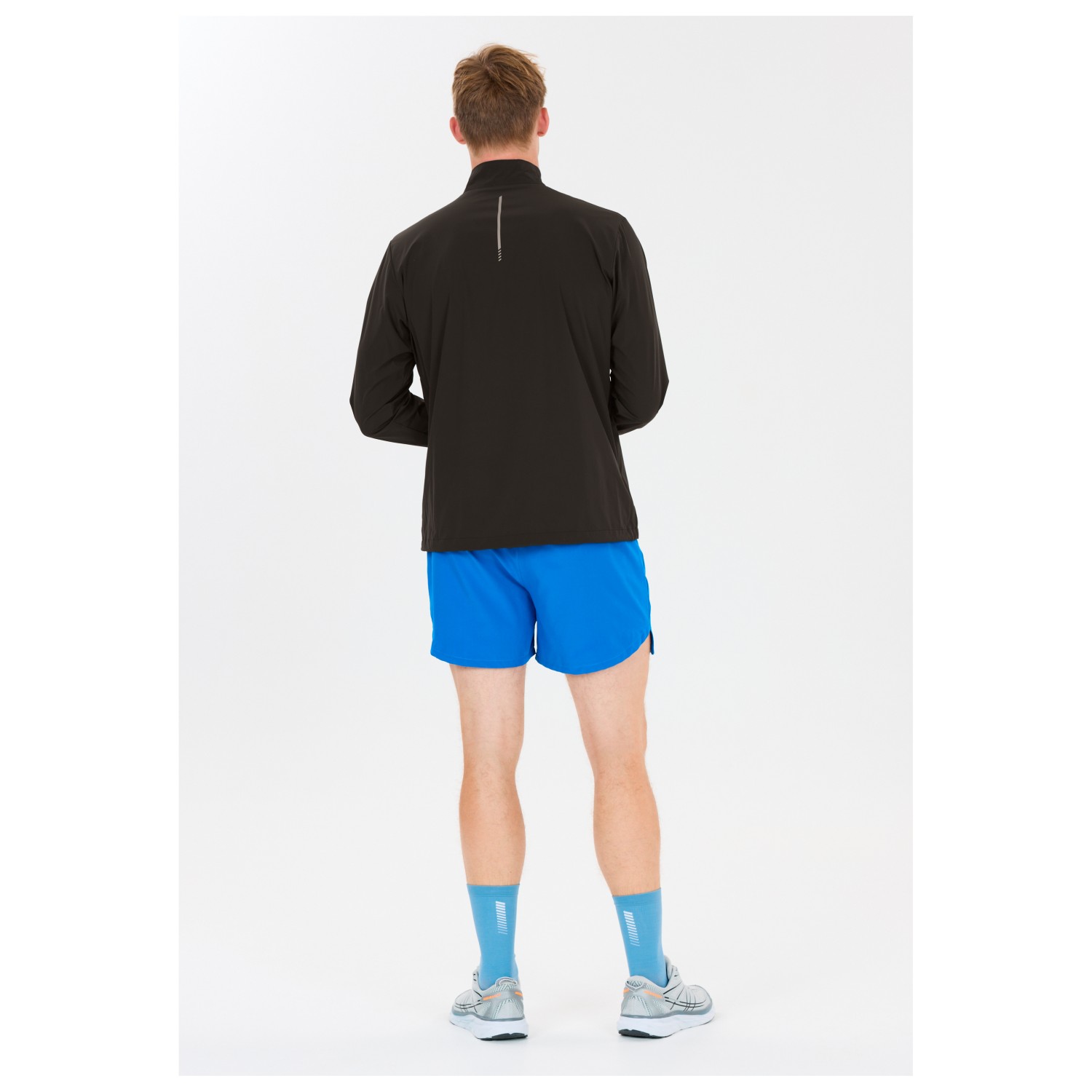 - elastiske ærmeribkanter, Snoretræk i sømmen, Logoprint, Ståkrave
