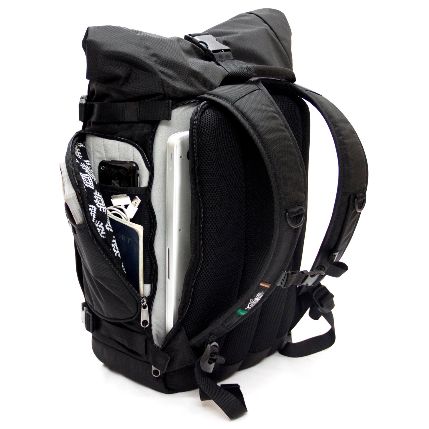 - volumen oprullet: 40 liter; mål rum til bærbar computer: 48 x 35 x 4 cm; mønster, der kan udskiftes, på fronten; spænder til at fastgøre pladskrævende genstande