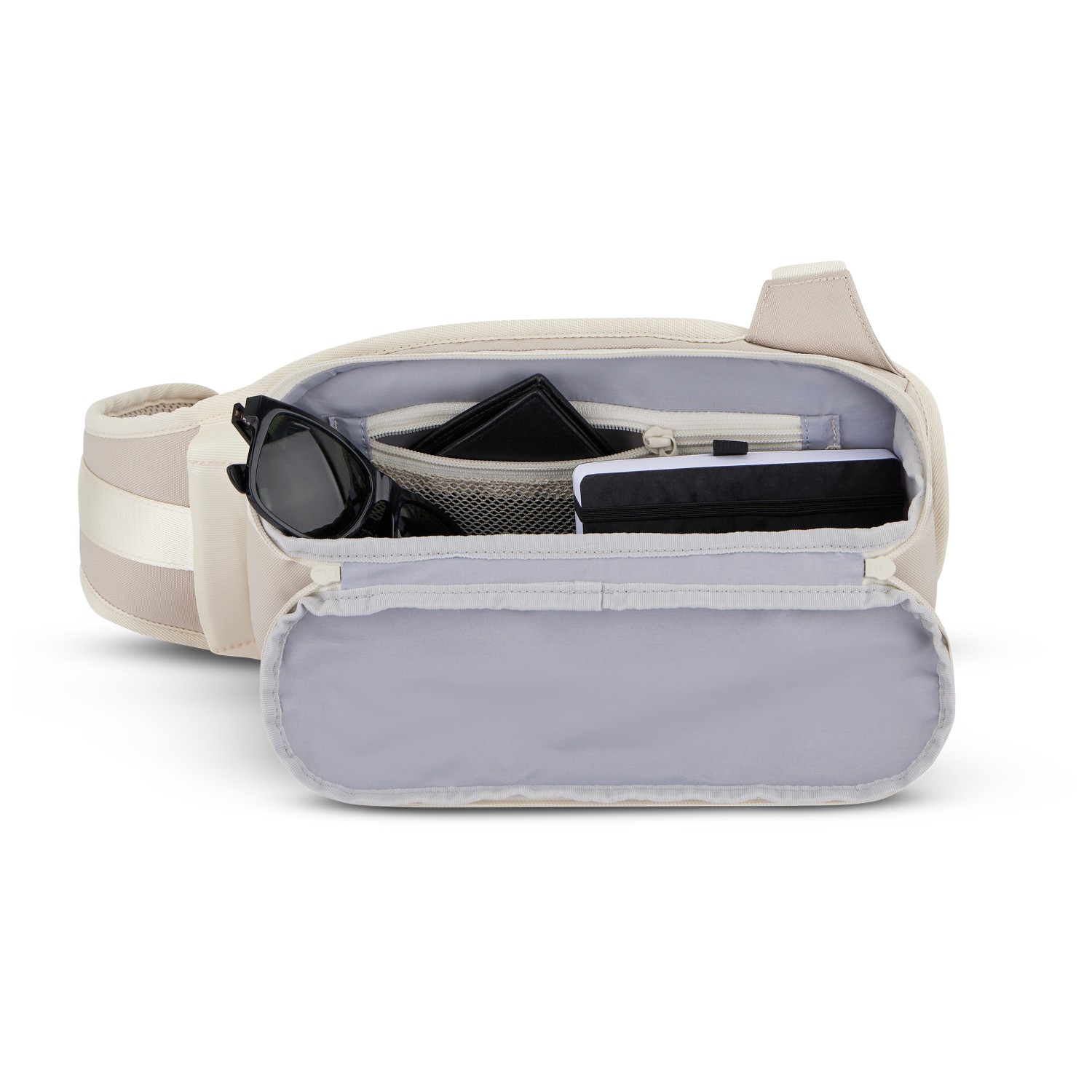- hemmeligt rum, lynlås-frontlomme, indvendigt lynlåsrum, sidelomme, lomme på skulderrem