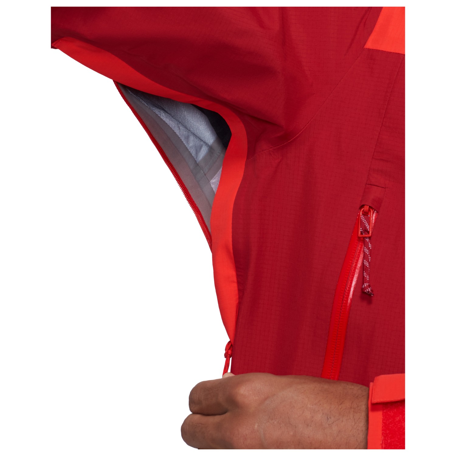 - justerbart søm, forformede ærmer, vandafvisende lynlåse