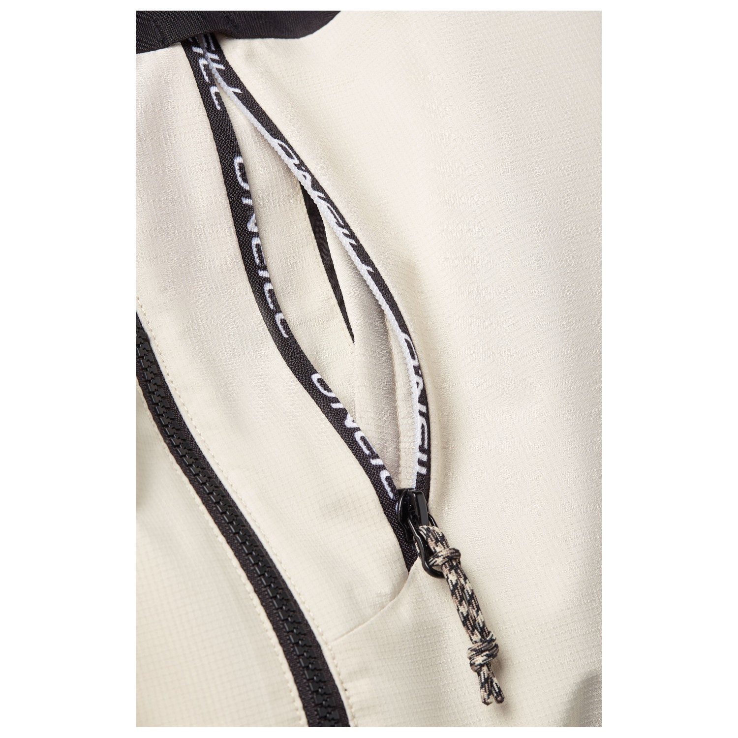 - tommelslynger, Gamacher på ærmeafslutningerne, Jakke-buks-forbindelsessystem, Logoprint, Snefang
