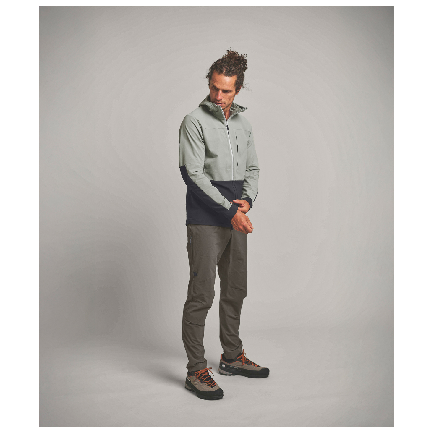 - elastiske ærmeribkanter, Snoretræk i sømmen, forstærkede skuldre, forformede ærmer