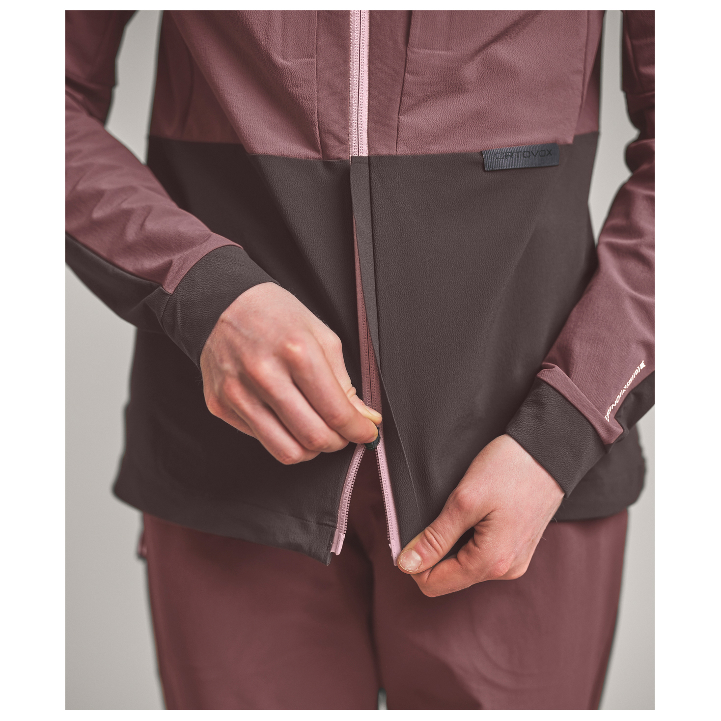 - elastiske ærmeribkanter, kan skjules i egen lomme, Snoretræk i sømmen