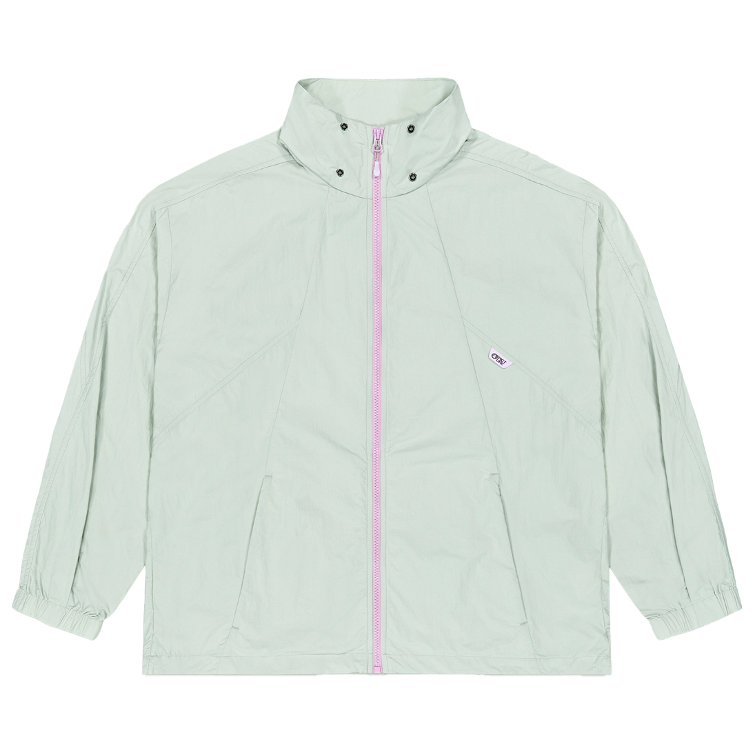- elastiske ærmeribkanter, Snoretræk i sømmen, Ståkrave