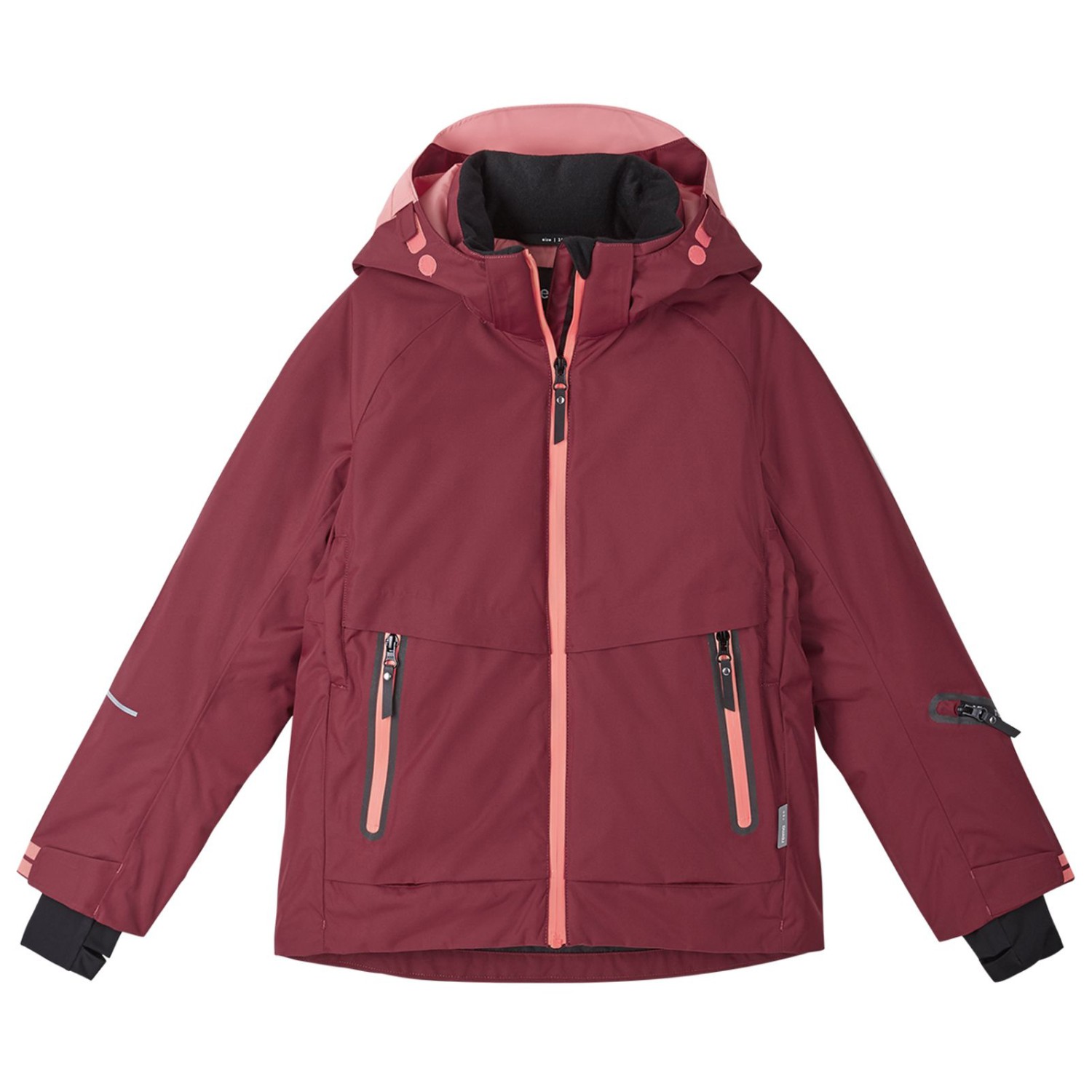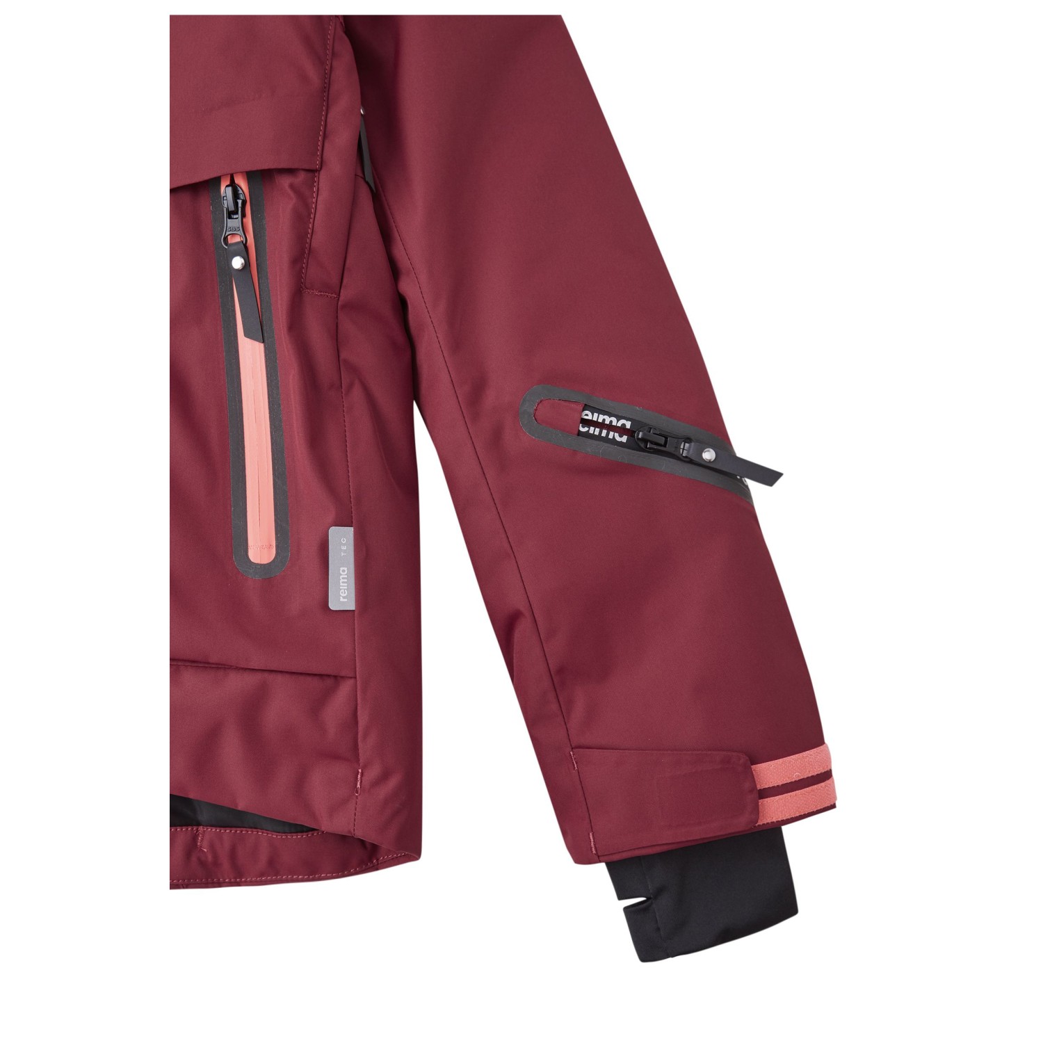 - elastiske indvendige ribber, aftageligt snefang, Jakke-buks-forbindelsessystem, justerbare ærmekanter, justerbart søm, vandafvisende lynlåse