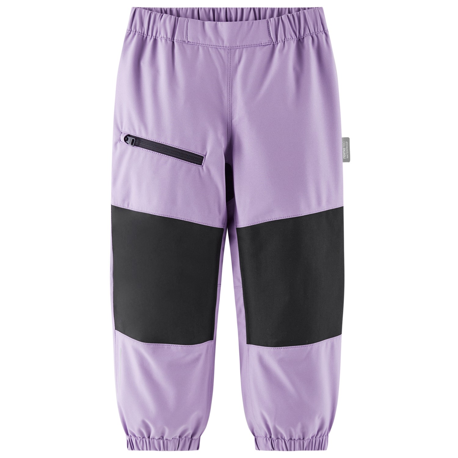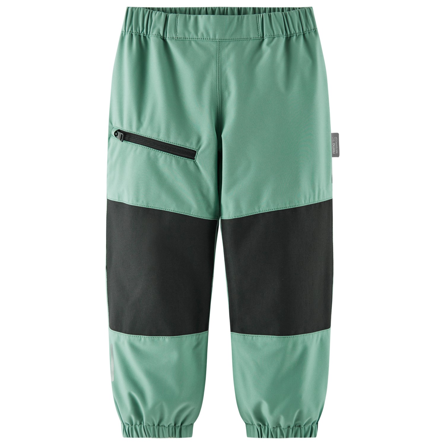- elastiske benafslutninger, elastisk linning i taljen, med snoretræk, forformede knæ, ekstra forstærkning i skridtet