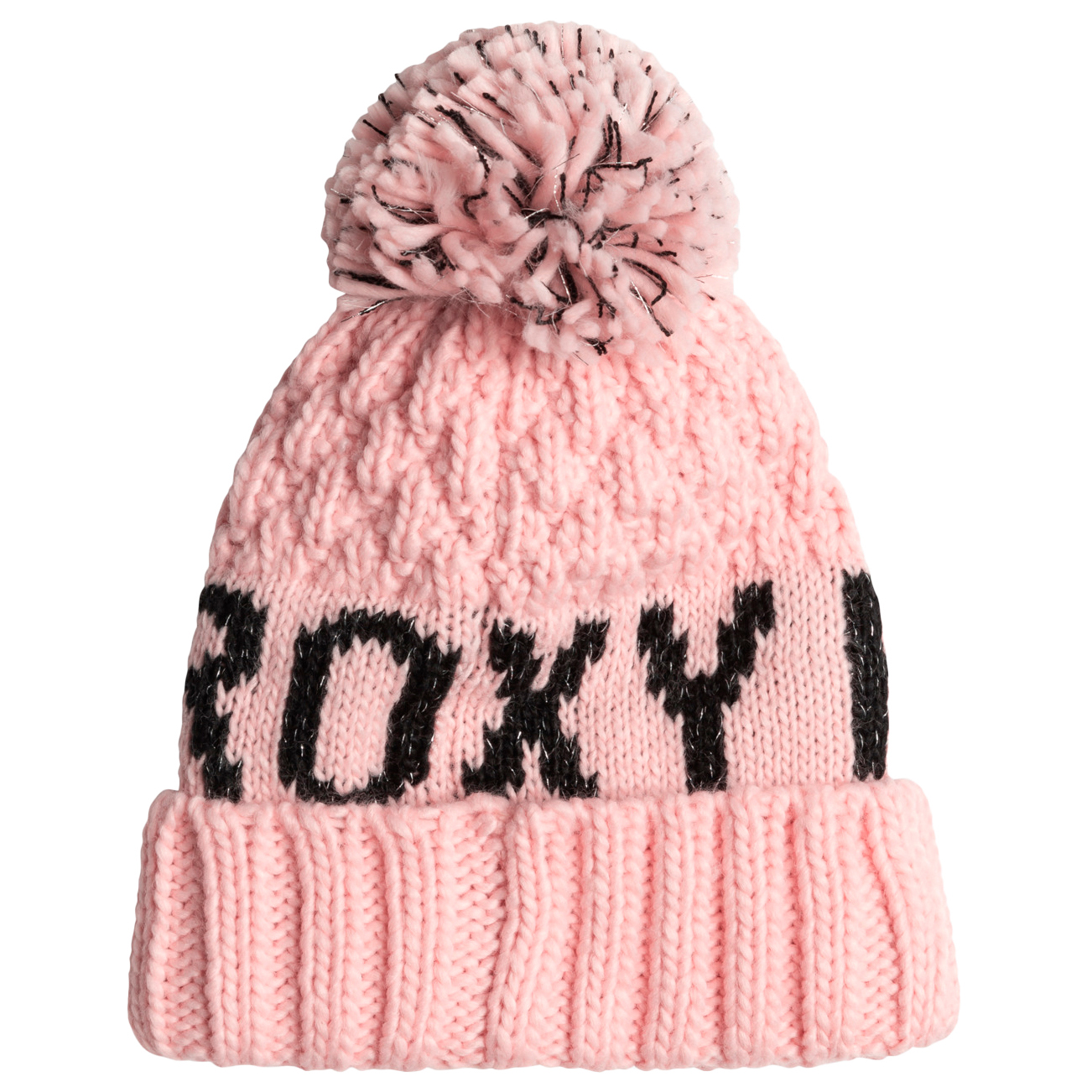 - jacquard-ROXY-skrift med sølvfarvet, metallisk tråd
