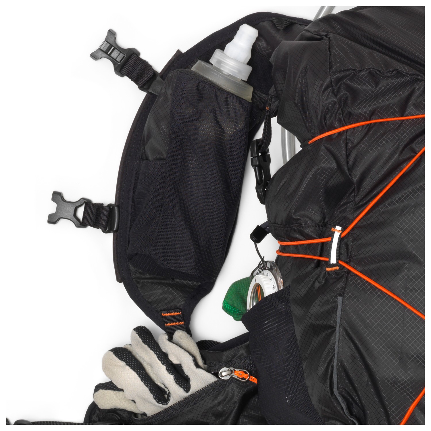 - 2 forrum, 2 lommer på hofteseler, 2 mesh-rum i siden, indvendigt lynlåsrum