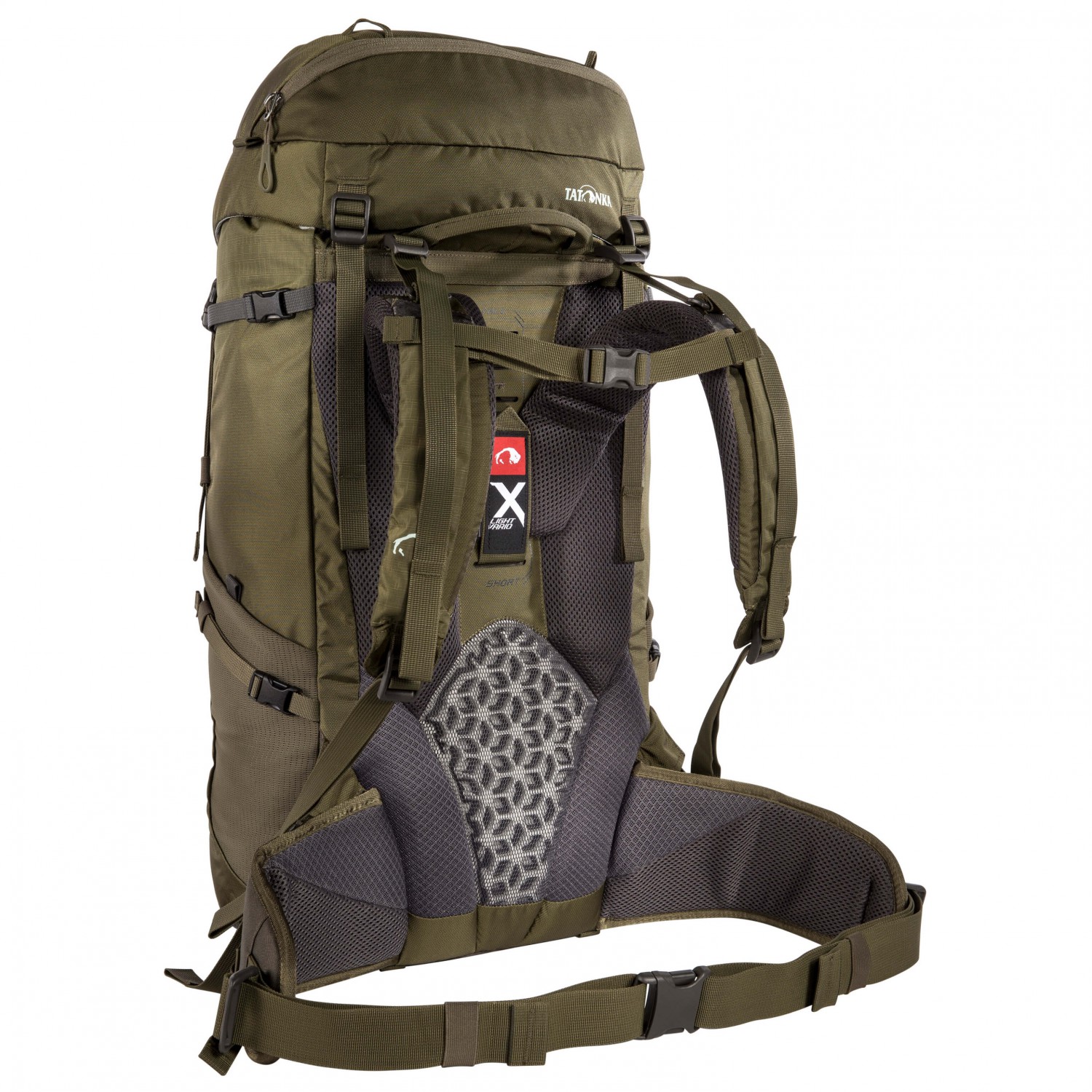 - Brystsele, polstrede skulderstroppe, polstret hoftesele, polstret ryg, Lastkontrolrem, X-Ramme