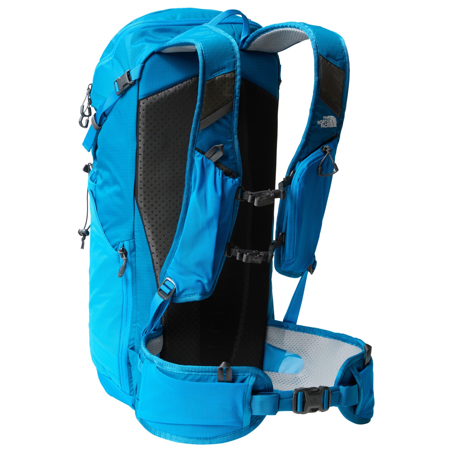 - 2 flaskeholdere, 2 lommer på hofteseler, fastgørelsesrem på forsiden, isøkse-/ stokholder