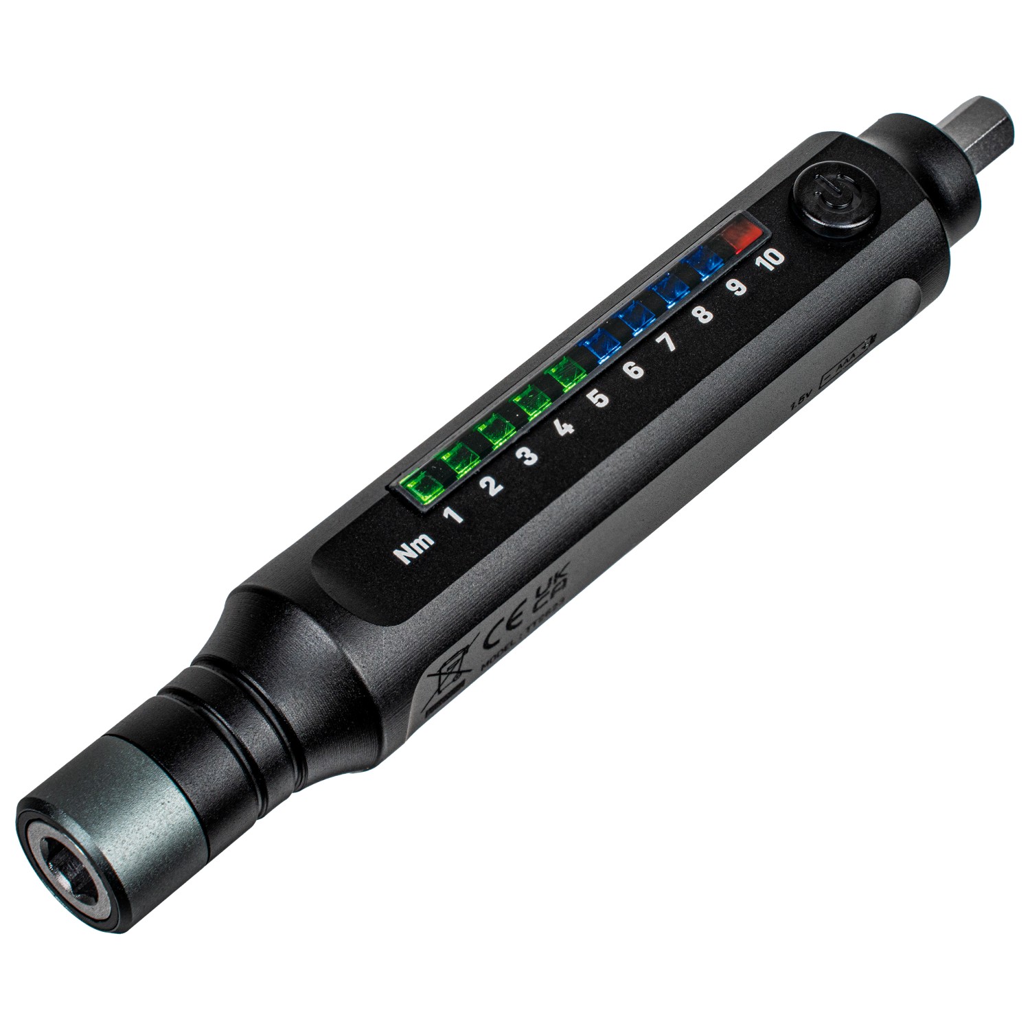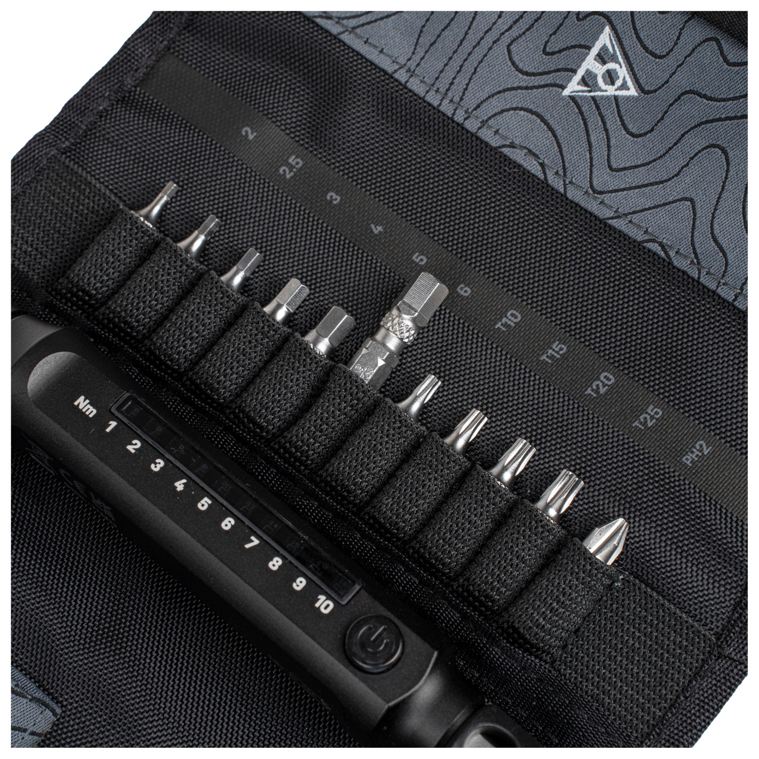 - materialer: aluminium (korpus), krom-vanadium-stål (skralde), hærdet stål (bits); indvendige sekskantbits 2 / 2,5 / 3 / 4 / 5 / 6 mm Torx-bits T10 / T15 / T20 / T25 skruetrækker
