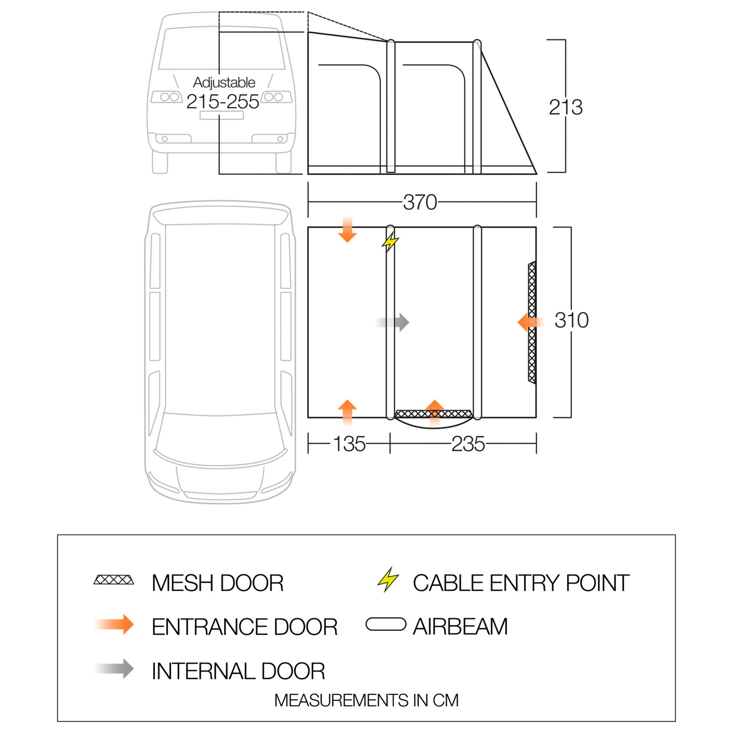 - 370 x 310 x 213 cm (L x B x H)